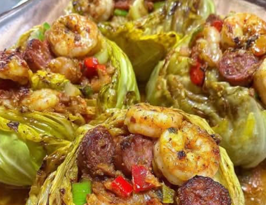 Keto Cajun Shrimp & Sausage Stuffed Cabbage