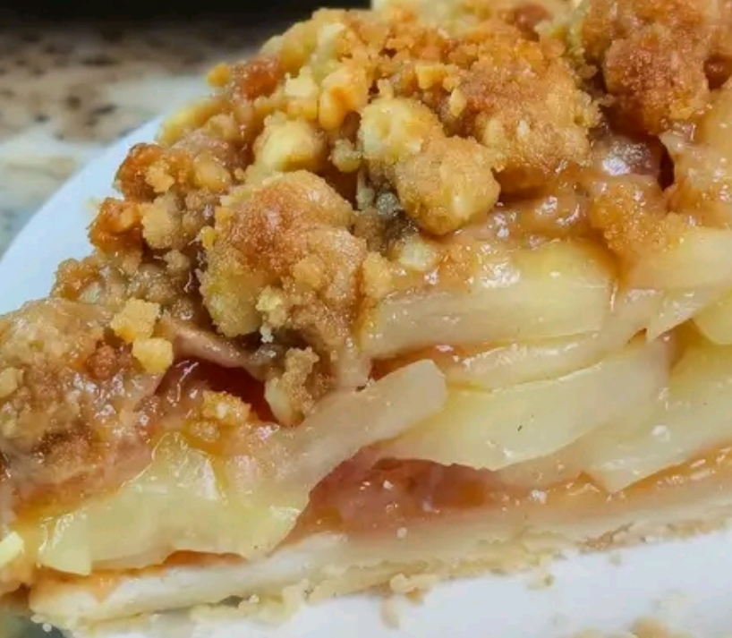 Apple pie is a classic dessert consisting of a pastry crust and a filling of sliced apples. Sugar is added to the apples, and spices such as cinnamon and nutmeg are commonly used. The bottom crust is typically placed in a pie dish, covered with the apple filling, and then topped with a second crust or a lattice design.