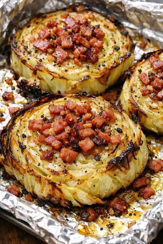 The edges roast to a golden, crispy perfection while the centers stay tender, and the bacon with black pepper fills the kitchen with that cozy, Sunday-supper aroma. With just four ingredients and a hot oven, simple cabbage becomes a savory, satisfying side that feels both classic and modern.