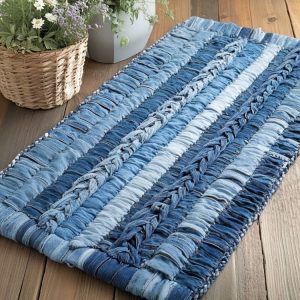 A denim rug is a durable and eye-catching addition to any room. Cut strips of denim and braid them together, sewing the braids side by side to form a rug. Alternatively, you can weave the strips on a loom for a different texture. This project requires patience but results in a unique and hard-wearing floor covering.