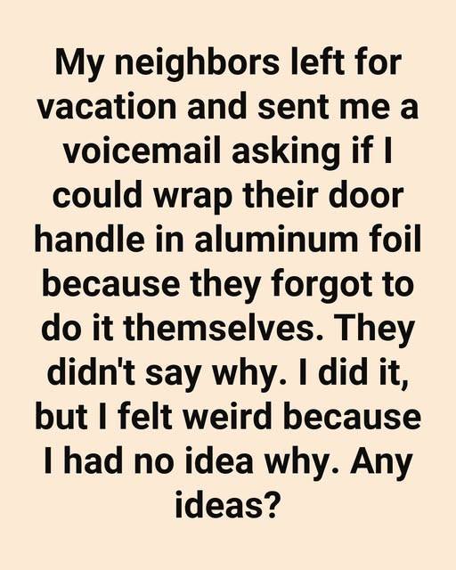 I went over to do it, wanting to be a helpful neighbor, but I’ll admit I felt a little strange the whole time. I kept wondering: why would anyone need to wrap a doorknob in shiny aluminum? It felt like a scene straight out of a mystery movie—or one of those viral “life hacks” on social media that may or may not work. Curious, I decided to do some digging to find out why people actually do this.